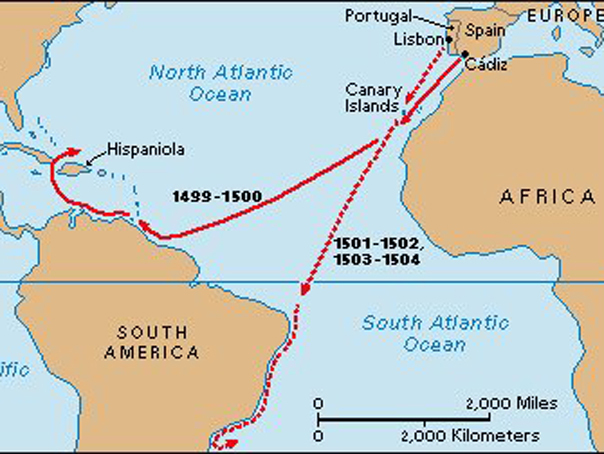 участник первой экспедиции Колумба 1492, исследовал в 1499