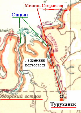 вниз от Туруханска, пройдя по берегу больше тысячи вёрст.